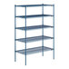 This kit includes (4) 74" posts, (5) 24" x 48" shelves, and 20 pairs of split sleeves. Made of durable, heavy-duty, reinforced, blue epoxy-coated steel, this unit is built to last. The epoxy coating is antimicrobial, protecting it from bacteria, mold, mildew, and fungi. It's also resistant to rust and corrosion, ensuring that it will maintain its quality even in demanding environments. This unit requires assembly.