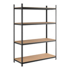 For a safe, durable storage solution, rely on this Lavex Pro shelving unit! This unit comes with (5) 24" x 60" x 3/8" heavy-duty particle board shelves and (4) 84" heavy-duty 1-piece uprights, which provide a strong, reliable framework to safely store and access industrial materials. It includes heavy-duty double rivet beam support for rigid assembly and exceptional strength. The uprights are made of powder-coated 18 gauge steel while the beams are constructed of powder-coated 16 gauge steel for added durability. Each shelf has an impressive 1,200 lb. load capacity, so you can confidently store heavy or oversized items. Since the shelves are solid, they allow for efficient loading and unloading and can easily accommodate items that might fall through regular vented or wire shelving.