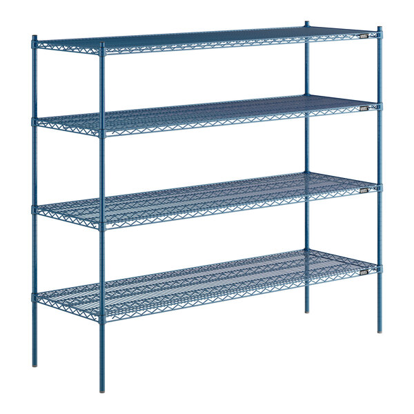 Lavex Pro 24" x 72" NSF Blue Epoxy Heavy-Duty 4-Shelf Kit with 64" Posts and Antimicrobial Coating