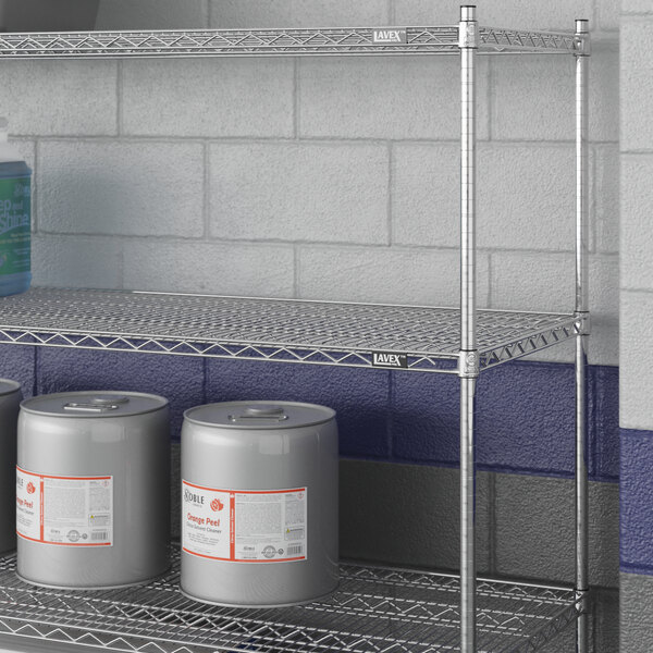 This shelf features a convenient design that maximizes airflow between and around products. Whether you need to store tools, equipment, or supplies, it's an ideal storage solution for warehouses and industrial settings. Together with Lavex Pro chrome heavy-duty posts, additional shelves, and accessories (all sold separately) of your choosing, you can use this shelf to create a customized storage solution to best meet your facility's needs and space.