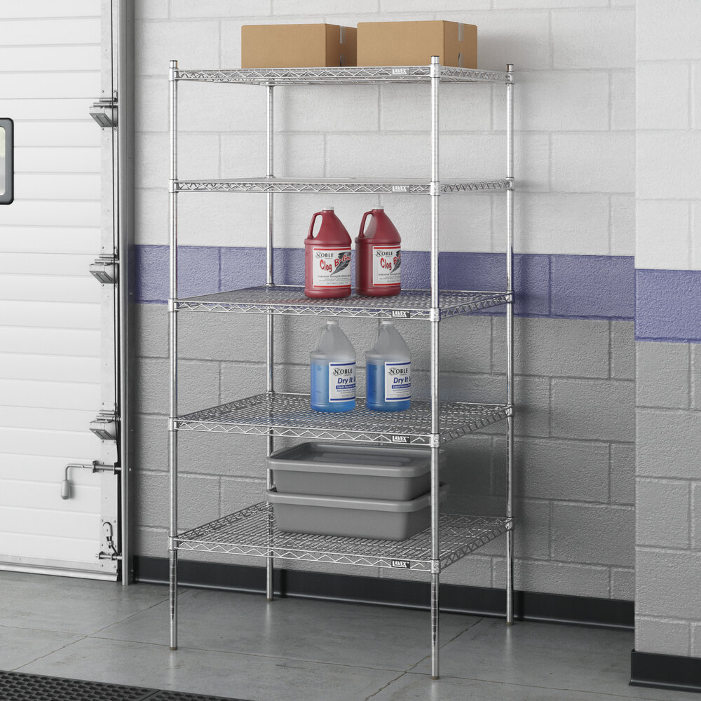 Designed for use in dry environments, this shelving unit is an excellent choice for organizing and maximizing storage space. Whether you're looking to streamline your warehouse operations or simply need additional storage in your industrial facility, this heavy-duty shelving kit is the perfect solution. Mix and match with Lavex Pro accessories (sold separately) to personalize your kit! Invest in the Lavex Pro chrome heavy-duty 5-shelf kit and experience the durability and functionality it brings to your workspace.