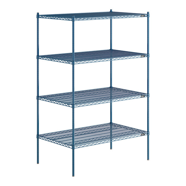 Lavex Pro 30" x 48" NSF Blue Epoxy Heavy-Duty 4-Shelf Kit with 74" Posts and Antimicrobial Coating