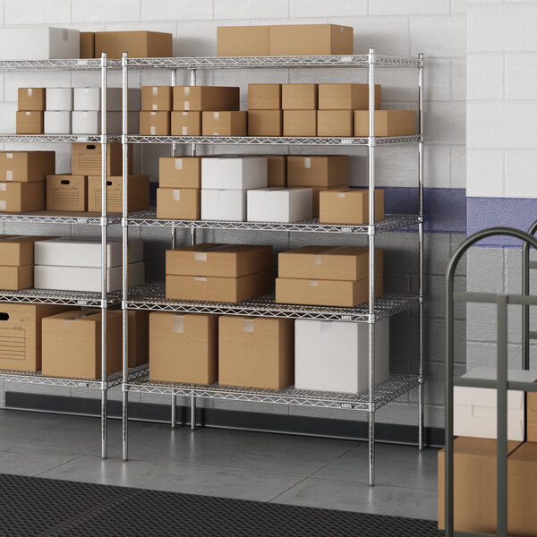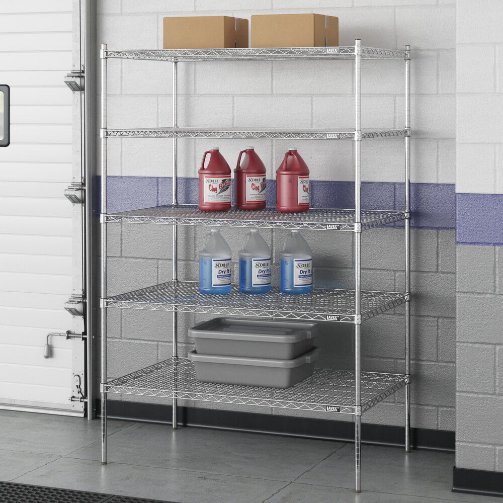 Designed for use in dry environments, this shelving unit is an excellent choice for organizing and maximizing storage space. Whether you're looking to streamline your warehouse operations or simply need additional storage in your industrial facility, this heavy-duty shelving kit is the perfect solution. Mix and match with Lavex Pro accessories (sold separately) to personalize your kit! Invest in the Lavex Pro chrome heavy-duty 5-shelf kit and experience the durability and functionality it brings to your workspace.