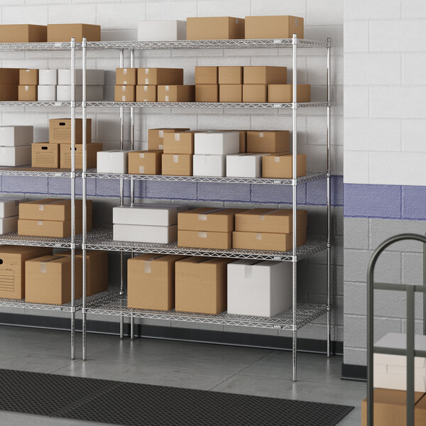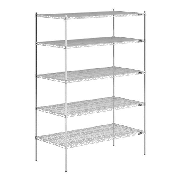 Designed for use in dry environments, this shelving unit is an excellent choice for organizing and maximizing storage space. Whether you're looking to streamline your warehouse operations or simply need additional storage in your industrial facility, this heavy-duty shelving kit is the perfect solution. Mix and match with Lavex Pro accessories (sold separately) to personalize your kit! Invest in the Lavex Pro chrome heavy-duty 5-shelf kit and experience the durability and functionality it brings to your workspace.