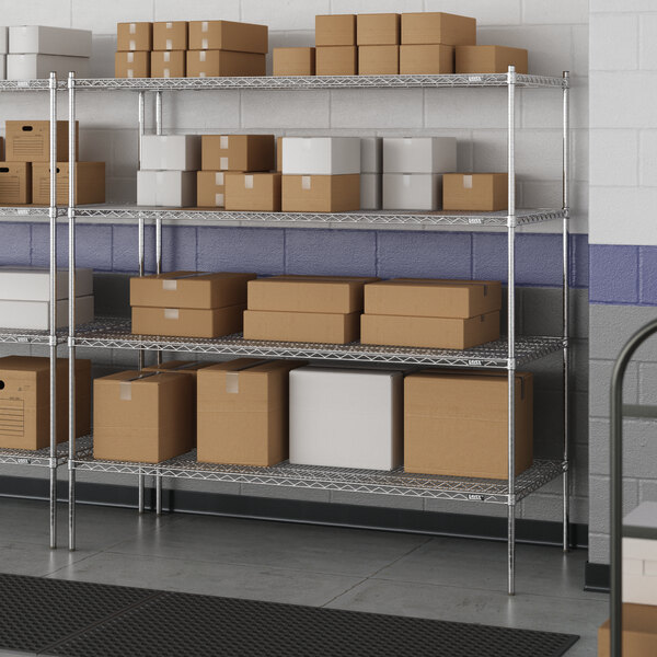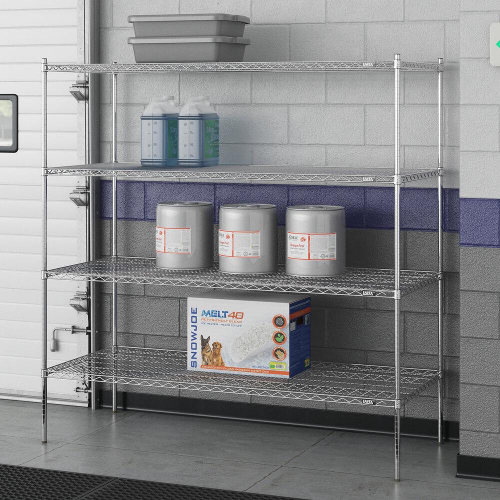 Designed for use in dry environments, this shelving unit is an excellent choice for organizing and maximizing storage space. Whether you're looking to streamline your warehouse operations or simply need additional storage in your industrial facility, this heavy-duty shelving kit is the perfect solution. Mix and match with Lavex Pro accessories (sold separately) to personalize your kit! Invest in the Lavex Pro chrome heavy-duty 4-shelf kit and experience the durability and functionality it brings to your workspace.