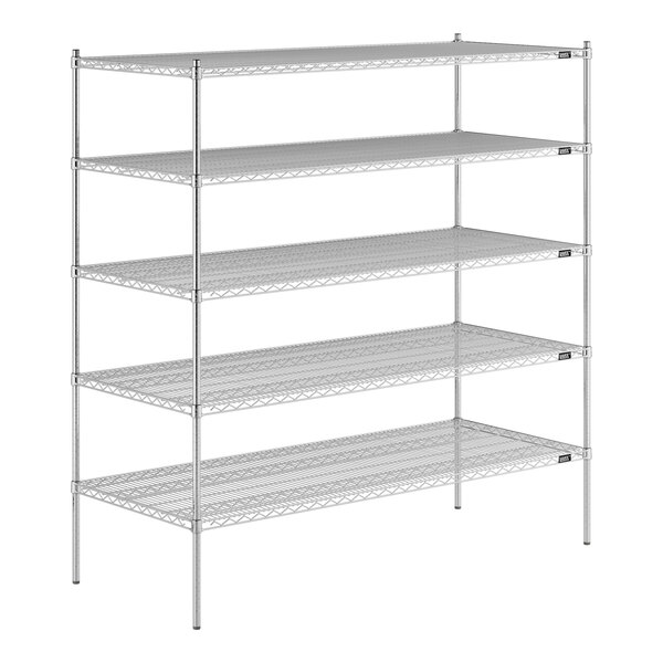Designed for use in dry environments, this shelving unit is an excellent choice for organizing and maximizing storage space. Whether you're looking to streamline your warehouse operations or simply need additional storage in your industrial facility, this heavy-duty shelving kit is the perfect solution. Mix and match with Lavex Pro accessories (sold separately) to personalize your kit! Invest in the Lavex Pro chrome heavy-duty 5-shelf kit and experience the durability and functionality it brings to your workspace.