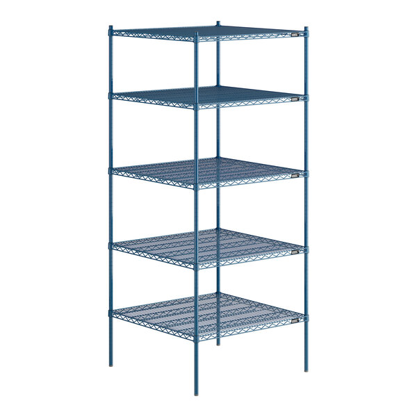 Lavex Pro 36" x 36" NSF Blue Epoxy Heavy-Duty 5-Shelf Kit with 86" Posts and Antimicrobial Coating