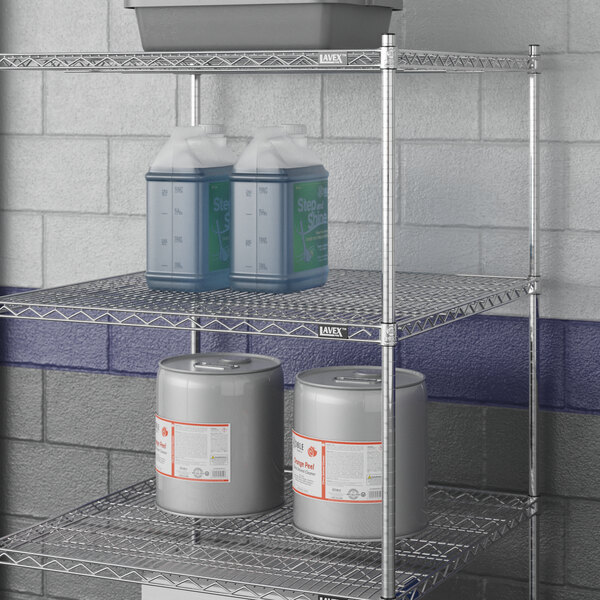 This shelf features a convenient design that maximizes airflow between and around products. Whether you need to store tools, equipment, or supplies, it's an ideal storage solution for warehouses and industrial settings. Together with Lavex Pro chrome heavy-duty posts, additional shelves, and accessories (all sold separately) of your choosing, you can use this shelf to create a customized storage solution to best meet your facility's needs and space.