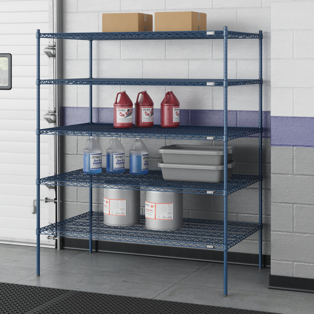 Designed for use in moist or damp environments, this shelving unit is an excellent choice for organizing and maximizing storage space. Whether you're looking to streamline your warehouse operations or simply need additional storage in your industrial facility, this heavy-duty shelving kit is the perfect solution. Mix and match with Lavex Pro accessories (sold separately) to personalize your kit! Invest in the Lavex Pro blue epoxy heavy-duty 5-shelf kit and experience the durability and functionality it brings to your workspace.