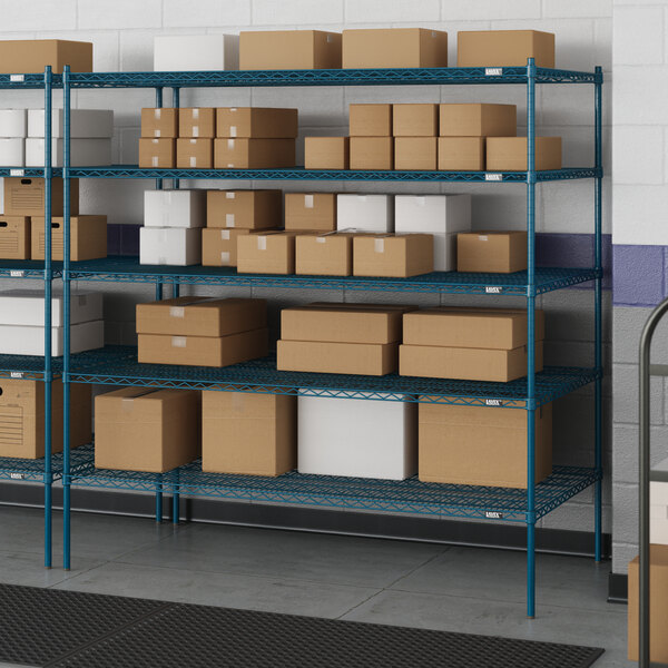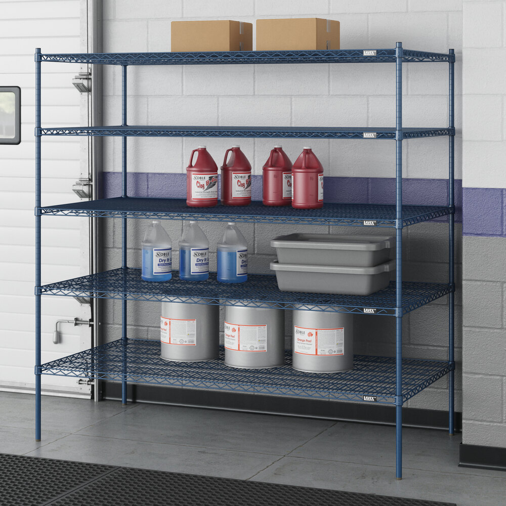 Designed for use in moist or damp environments, this shelving unit is an excellent choice for organizing and maximizing storage space. Whether you're looking to streamline your warehouse operations or simply need additional storage in your industrial facility, this heavy-duty shelving kit is the perfect solution. Mix and match with Lavex Pro accessories (sold separately) to personalize your kit! Invest in the Lavex Pro blue epoxy heavy-duty 5-shelf kit and experience the durability and functionality it brings to your workspace.