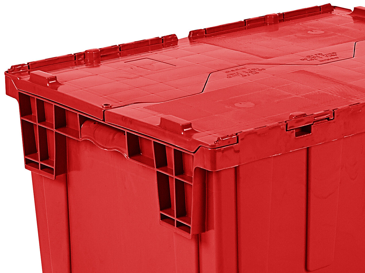 This unit boasts a convenient interlocking hinged lid that not only keeps the tote tightly sealed and stable during transport, but also makes this tote capable of stacking for easy storage. Since the lid is attached, you won't ever lose it during use or transport.