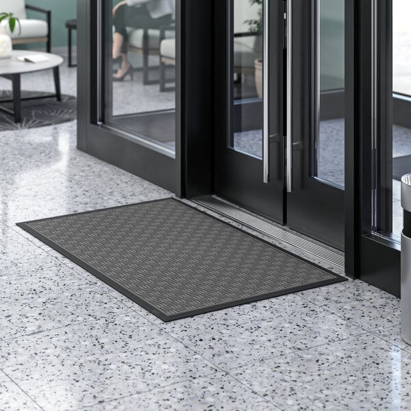 Lavex Water Absorbent 3' x 5' Gray Parquet Indoor Entrance Mat - 3/8" Thick