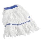 Keep your establishment clean and ready for customers or guests with this Lavex white large microfiber wet mop head with 1" blue headband. Made of highly absorbent microfiber, this wet mop will absorb liquids better than traditional cotton mops, making it perfect for cleaning large spills. The light weight microfiber material also attracts more bacteria than standard mops, and provides a lint-free and streak-free environment, ensuring your office, restaurant, school, or healthcare facility is thoroughly clean.