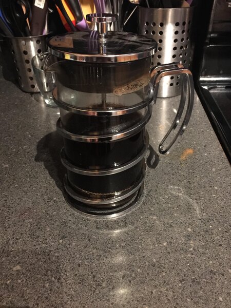 This is a really solid coffee pot. It is a little larger than others of its type and the beaker fits very snugly in the frame.