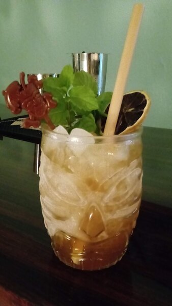 Serves up tropical drinks with flair. Is the size of a double old fashion or mai tai glass. Thick enough to be durable without the worry of breaking. It can be cleaned in the dishwasher, which is also a plus.
