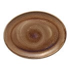 Create a dynamic table setting with this Heart & Soul Perfect Match 12 1/8" x 9 3/8" cumin porcelain oval coupe platter. Featuring a Mediterranean-inspired design and robust colorways, this platter will add a refined touch of elegance to your tables. It is coated in a twice-fired, natural reactive glaze that makes every piece unique. The subtle shades of brown in the cumin colorway create a lovely contrast for the offerings on your menu.