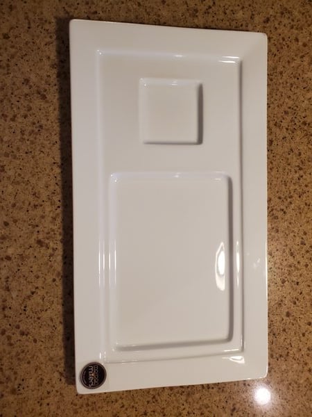 Create tasteful table settings in your upscale dining area with this Libbey Slate tray! With a modern design that features a well ring and a large plating space, this tray is perfect for serving your signature lunch combos all on one surface. Not only does its wide rim perfectly frame each meal, but its ultra bright white color also creates optimal contrast, allowing your colorful foods to seemingly pop off the table for an eye-catching appearance.