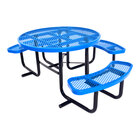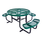 Enhance your seating area with the Lifeyard 46" round green expanded metal ADA picnic table. Crafted with a strong expanded metal construction, this picnic table is designed for durability and longevity, making it a reliable seating option for both indoor and outdoor settings. The light weight thermoplastic coating not only provides a modern and sleek appearance but also ensures resistance against impacts, rust, and chipping, maintaining the picnic table's aesthetic appeal over time. Enjoy a smooth and comfortable seating experience with the picnic table's ergonomic design, perfect for customers to relax, eat, and socialize. Plus, it's ADA compliant and has one open side to accommodate wheelchair users.