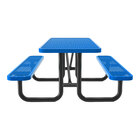 Enhance your seating area with the Lifeyard 8' green expanded metal picnic table. Crafted with a strong expanded metal construction, this picnic table is designed for durability and longevity, making it a reliable seating option for both indoor and outdoor settings. The light weight thermoplastic coating not only provides a modern and sleek appearance but also ensures resistance against impacts, rust, and chipping, maintaining the picnic table's aesthetic appeal over time. Enjoy a smooth and comfortable seating experience with the picnic table's ergonomic design, perfect for customers to relax, eat, and socialize.