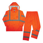 Keep workers visible and protected from rain with this Ergodyne GloWear 8376K rainsuit. This rainsuit offers comfortable protection in wet conditions, making it ideal for construction workers, parking lot attendants, crossing guards, and emergency response crews. With a bright lime green color, this rainsuit draws attention to the individual wearing it for increased safety on the job. It has 2" silver reflective tape on both the jacket and pants, providing enhanced visibility at night or in low-light conditions. This Class 3, Type R rainsuit is designed for roadway occupational use, and when worn together it maintains compliance with ANSI/ISEA 107-2015 standards.