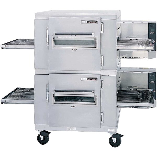 Rapidly heat, cook, bake, and crisp your most popular appetizers, sides, entrees, and pizzas with the Lincoln Impinger I 1400 series double stacked electric conveyor oven. Designed for stacking, this 2-oven unit is perfect for busy operations tight on space. Each conveyor oven operates on simple digital controls with a single on / off power switch and a fluorescent readout that displays the set temperature in degrees, as well as the conveyor belt speed, thermostat indicator light, and diagnostic messages for easy troubleshooting. To ensure that the settings are not accidentally or intentionally altered, they automatically lock, promoting reliable product consistency.
