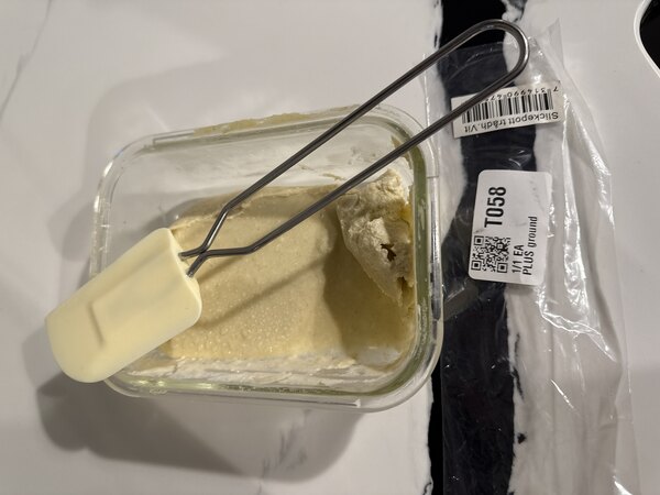 Customers appreciate this high-quality, flexible, and sturdy spatula, ideal for both hot and cold foods. Its narrow, silicone head is effective for scraping small pans and containers, and its design prevents water trapping and mold growth, making it easy to clean.