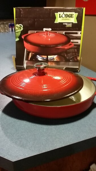 really really beautiful cast iron enamel dutch oven! cleans up great and hasnt discolored on me yet! I store mine in its original box with something between the pot and lid so the enamel doesnt chip.. but over all this is a great deal and i love that i can use it in the stove or in the oven.. great purchase!