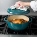 This Lodge EC6D38 6 qt. lagoon enameled cast iron dutch oven combines all the benefits of cast iron with the beauty of porcelain enamel! Creating cookware since 1896, Lodge has a rich history of an unparalleled dedication to quality and technology. This particular piece has superior heat retention and will evenly heat your soups, stews, casseroles, and cobblers. Boasting a glossy, blue green-colored enamel surface that's resistant to acidic and alkaline foods, this versatile item can be used in an oven up to 500 degrees Fahrenheit or on an induction, ceramic, electric, or gas cooktop. It can also handle cold temperatures, allowing you to marinate or refrigerate foods as you prep other meals.