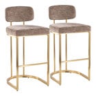 LumiSource Demi Gold Metal Mid-Back Barstool with Brown Fabric Back and Seat - 2/Case