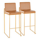 LumiSource Fuji Gold Metal High Back Barstool with Camel Faux Leather Back and Seat - 2/Case