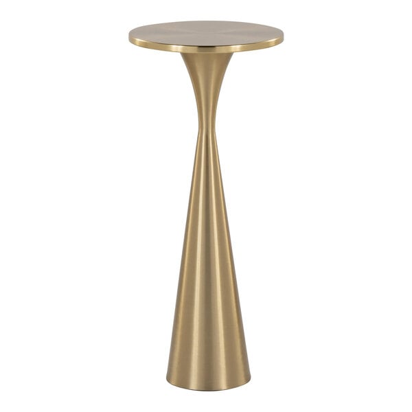 Elevate your indoor space with the perfect blend of style and function with this LumiSource Gemma 10" round brass steel side table with hourglass base! Ideal for upscale bars, restaurants, lounges, and event venues, this versatile table offers a refined touch to any gathering place. The practical design delivers excellent flexibility, providing you the option to create an intimate corner for drinks and conversation or to enhance the social experience for guests as they enjoy cocktails and mingling.