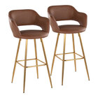 LumiSource Margarite Gold Metal Barstool with Gray Faux Leather Bucket Seat and Armrests - 2/Case