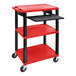 Luxor Tuffy 24" x 18" x 42 1/2" Red / Black Plastic 3-Shelf Utility Cart with Heavy-Duty Casters and Pullout Keyboard Shelf UCPL1PSR-B