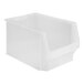 This 19 3/4" x 12 3/8" x 11 7/8" storage tote bin features a clear design and a convenient molded-in label slot on the front for easy product identification. It also has a rear-molded handle for easy transportation. Designed to optimize your organization, this bin can also be used with optional dividers to optimize organization (sold separately). It is the ideal unit for conveniently storing and transporting heavy-duty industrial items. Use this bin with compatible Quantum shelving for impressive high-density storage (sold separately).