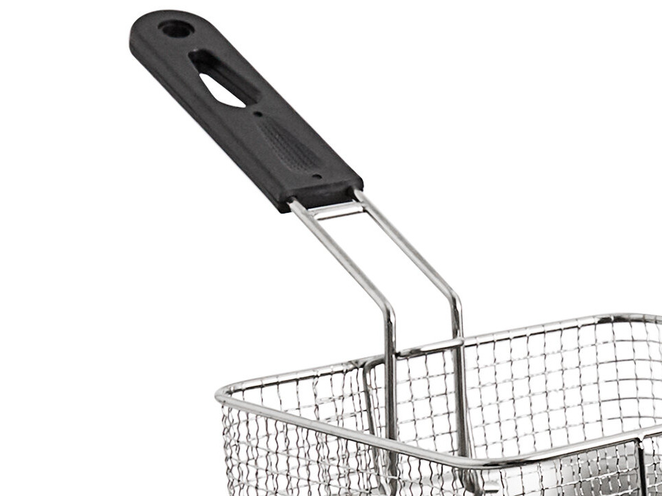 - Fryer basket has a coated, heat-resistant handle for comfortable use