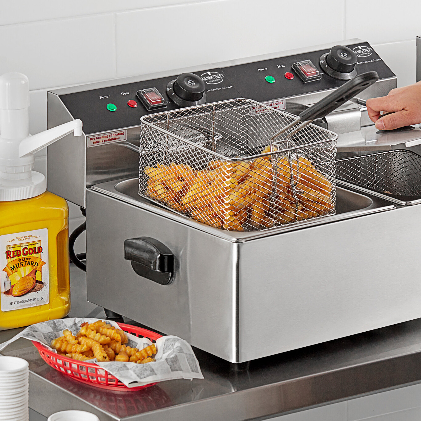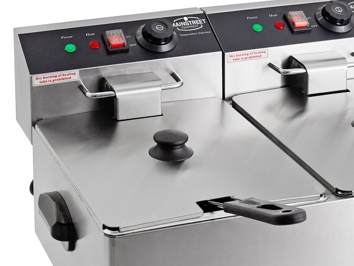 The MainStreet Equipment dual tank countertop fryer is perfect for light-duty applications like delis, small sandwich shops, and concession stands. Great for frying french fries, wings, or chicken tenders, this fryer has 3,300W of frying power in 2 large 10 lb. capacity tanks so that you can efficiently cook two different types of food at once to streamline food prep! It requires a 110V electrical connection for operation.