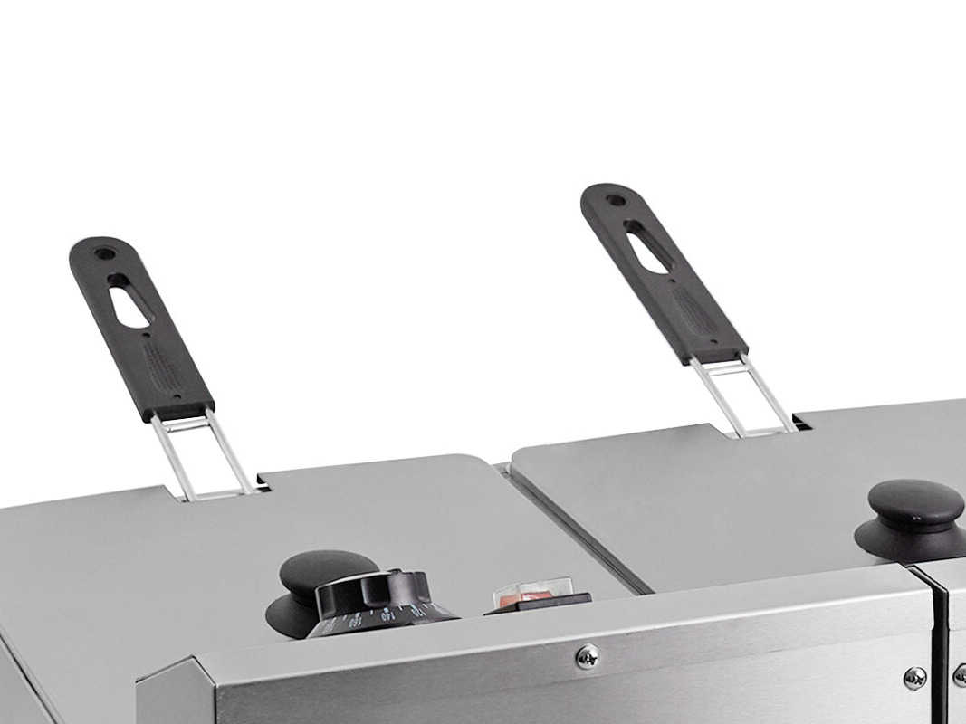 - 3,300W of frying power in 2 large 10 lb. capacity tanks