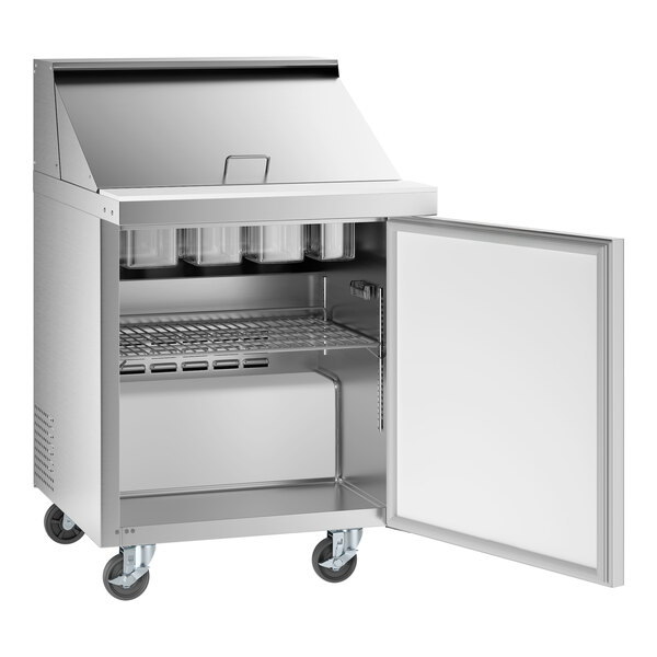 Perfect for making sandwiches, salads, and wraps, this prep table features one right-hinged solid swing door. The door also has stay-open and self-closing features that make it easy to load and unload this unit. Plus, the magnetic gasket keeps the door closed until it is manually reopened.