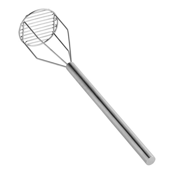 This masher's stainless steel construction is rust-resistant, ensuring that it will withstand rigorous use in any commercial kitchen. Upgrade your kitchen arsenal with the Fourté 30" round-faced stainless steel potato masher and experience the ease and efficiency it brings to your food preparation process.