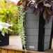 Enhance the beauty of your outdoor space with this Mayne Horizon square charcoal vinyl tapered planter! Its architectural silhouette and sturdy, woodgrain-finished panels add elegance and durability to virtually any outdoor space, making it great for decorating patios, decks, and garden areas. Additionally, this planter features a UV-resistant vinyl construction that maintains its rich color year-round and protects against sun exposure and harsh weather conditions. Thanks to its minimalist design, this planter is sure to add modern beauty to your plant display. Thoughtfully designed, this Horizon planter offers a refined aesthetic and a spacious planting depth for healthy root development. It also comes with built-in drainage for added convenience. The panels include Sure-Fit corners for precise, seamless assembly, providing a strong, long-lasting hold. Plus, this planter boasts a weighted construction that provides stability while still being easy to transport. It also features a single-wall design and a 7/8" thick wall.
