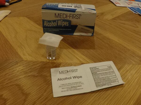 These medi first alcohol wipes are great. Individually wrapped and they are all wet and fresh when I open them. I have throwed other store brands in the past and when I open them theyve gone dry somehow. These, do not do that.