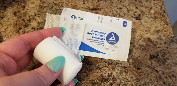 The medi first conforming gauze roll is great for all kinds of cuts and wounds! It’s easy to use, cut and wrap things up with!