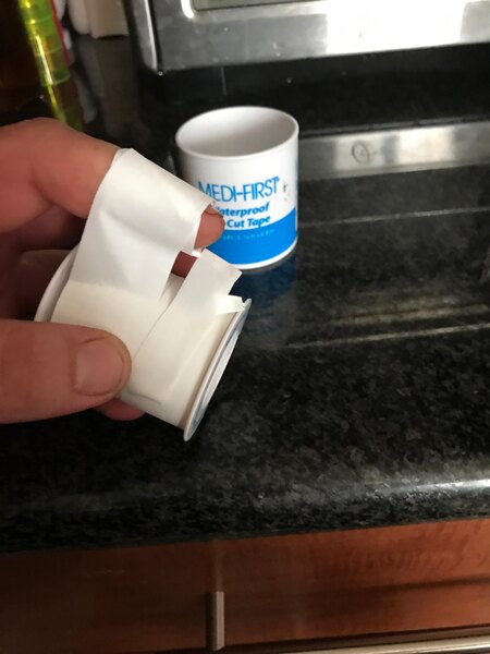 Medi-First Tri-Cut Adhesive Tape 5 Yards/Roll this tape is perfect for custom bandages. We got a roll to add to our large first aid kit. Great price.