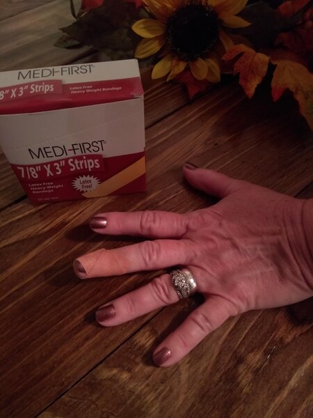 It's important to be prepared if an accident occurs in your kitchen, so we use the Medique 61450 Medi-First woven bandage strip. I recommend this product.