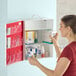 Keep your supplies close on hand in the event of a medical emergency with this Medi-First 712MTM 3-shelf empty first aid cabinet with pockets. With this kit you can equip yourself with gauze, pain relievers, bandages, and everything else you need to help treat cuts, burns, abrasions, and illnesses. It arrives empty, so you can fill it with whatever medicines or medical supplies you anticipate needing in an emergency.