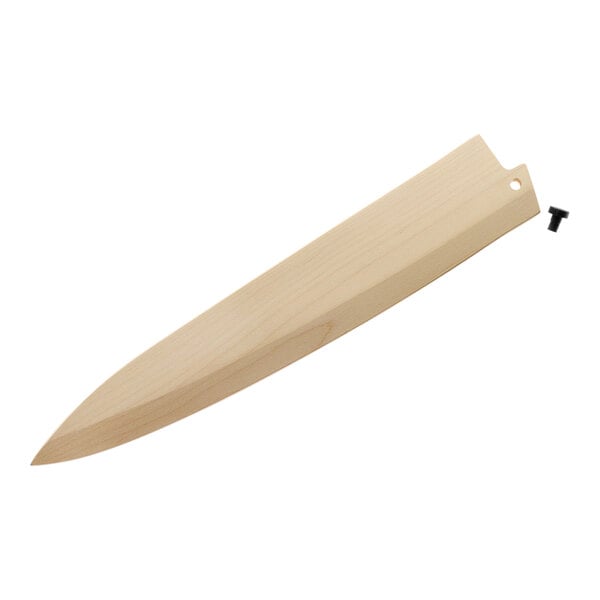 Store and protect your knife with this Mercer Culinary 13" x 2 1/4" saya birch wood cover for 11 7/8" gyuto knives M33135BIR! This sturdy wood cover is designed to effectively protect the knife blade during storage or travel, ensuring that it remains sharp and pristine. This cover will also enhance user safety by preventing your hands from coming into contact with a sharp blade when reaching for your tools. It's designed to be used with 11 7/8" or 300 mm gyuto knives.
