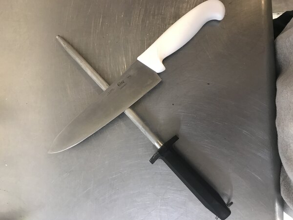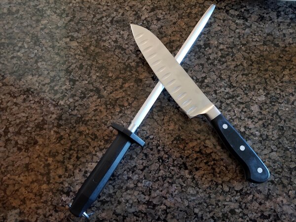 I have been using this honing/sharpening steel for over 7 years now, and it's performed great and held up very well. Honestly I like it better than my old Wusthoff. Take a close look at the handle and you'll see it's grippy and comfortable, and has a big protective barrier to keep your blade away from your hands so that you can work fast and not worry about slipping. Plus it has a ring for hanging, and comes in a 12" length. I'm helping somebody set up her kitchen and am recommending this steel BOTH for its performance and its value.