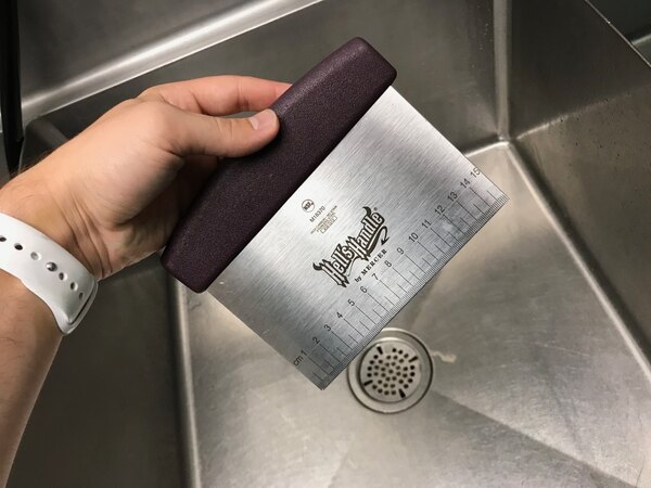 Love the Hells Handle line of products. The handle material never gets hot and super easy to clean. The gauge of stainless is very heavy so there is no flex as far as scrapers go. I used it improperly on purpose and cut some precise steak fries lol from russets. Great scraper on surfaces and flour cleanup and just food dice scooping. Might get a couple more for non food use.