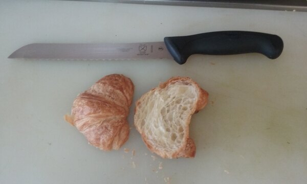 What a wonderful knife. I make garlic bread by the dozen at one time, this knife makes the work simple. So sharp, you get a beautiful slice. This is one of my go to knives.