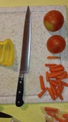 The blade was dulled enough after just 1 bell pepper and 1 tomato that it didn't cut as cleanly and easily through the second tomato. I had to use a different spot on the knife. I'm not as happy with this knife as with the other Mercer knives I have.